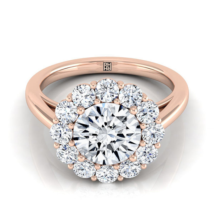 แหวนหมั้นเพชรทรงกลมเจียระไนแบบ Brilliant ประดับล้อมดอกไม้ทองกุหลาบ 14K - 3/4 กะรัตรวม