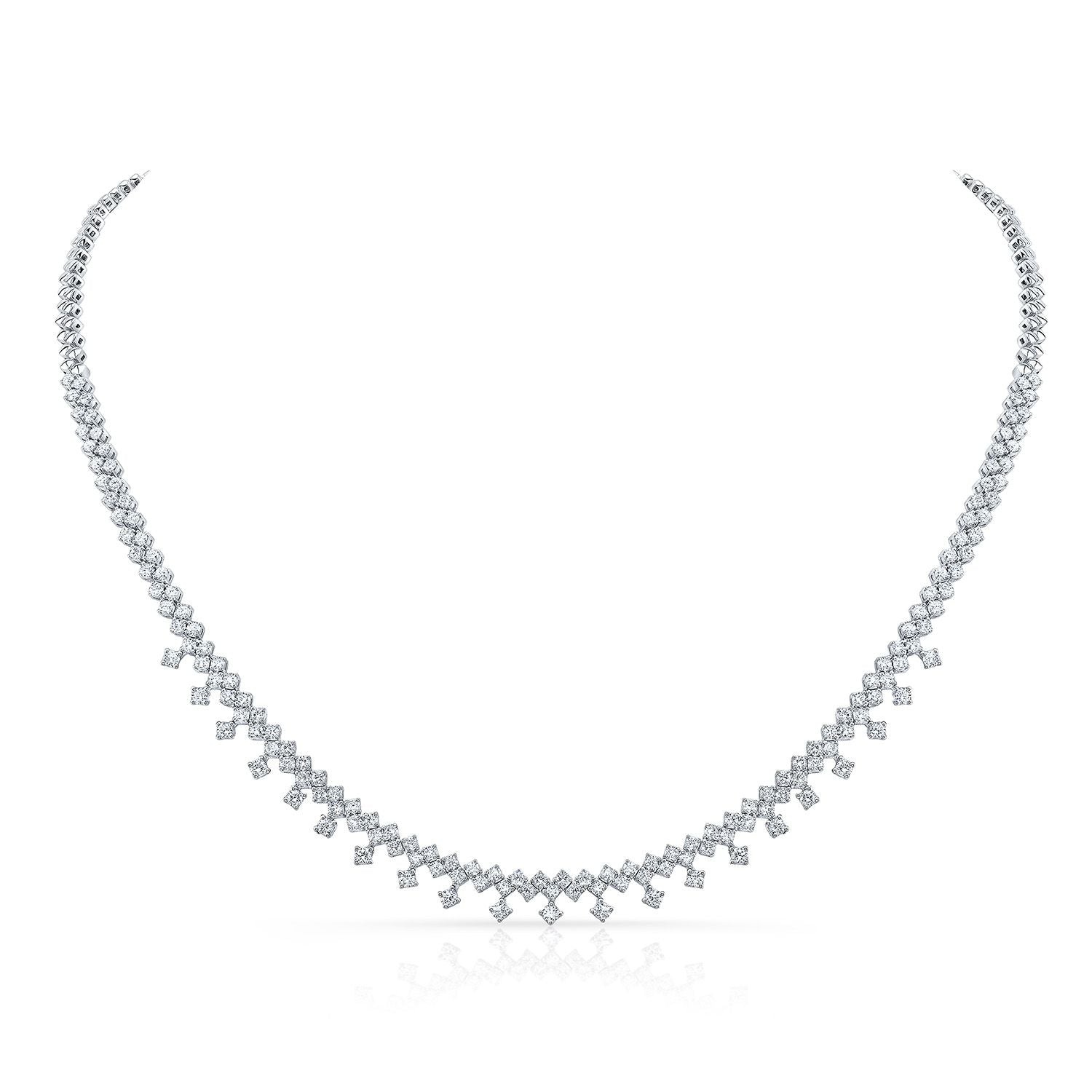 สร้อยคอทองคำขาว 14 กะรัต พร้อมเพชรทรงกลมเจียระไนแบบ Brilliant จำนวน 162 เม็ด น้ำหนักรวม 3.15 กะรัต ความยาว 16 นิ้ว