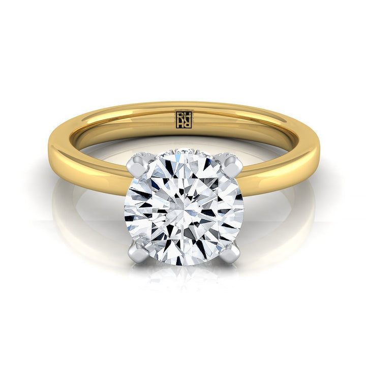 แหวนหมั้นเดี่ยวมงกุฎตะกร้าซ่อนเพชรทรงกลมเจียระไนแบบ Brilliant ทองคำเหลือง 14K น้ำหนักเพชรรวม 1/10 กะรัต