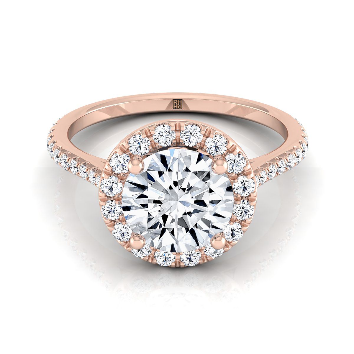 แหวนหมั้นเพชรเพชรฮาโลเพชรปู 14K สีทองกุหลาบ -3/8ctw