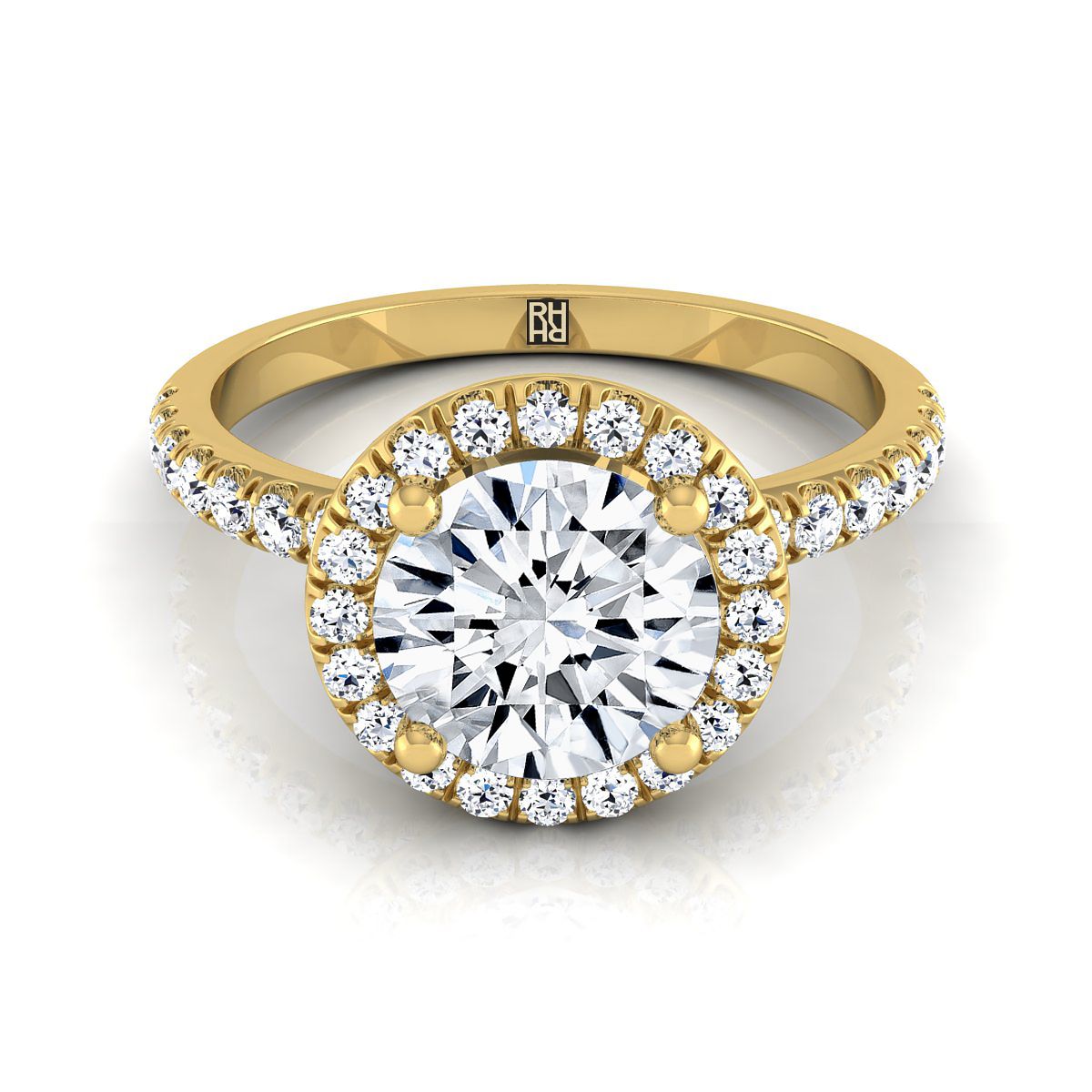 แหวนหมั้นเพชรทรงกลมเจียระไนแบบคลาสสิกแบบวงแหวนล้อมเส้นตรงทองคำเหลือง 14K - 1/3 กะรัตรวม