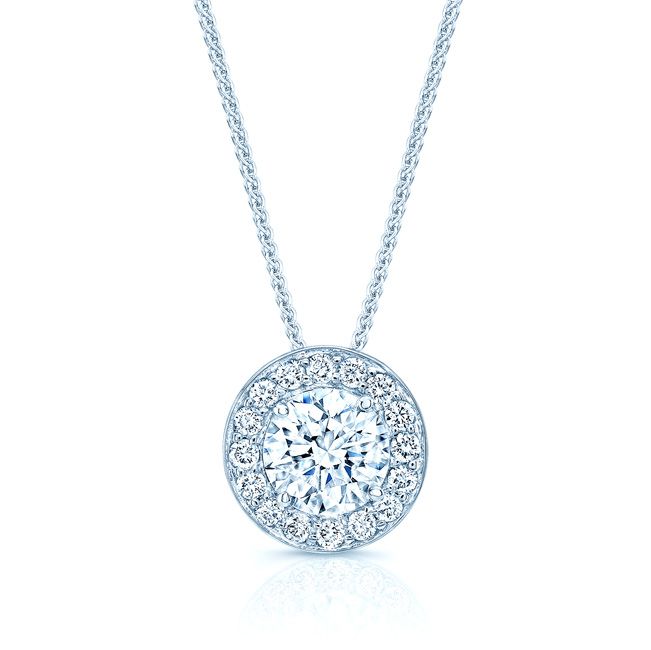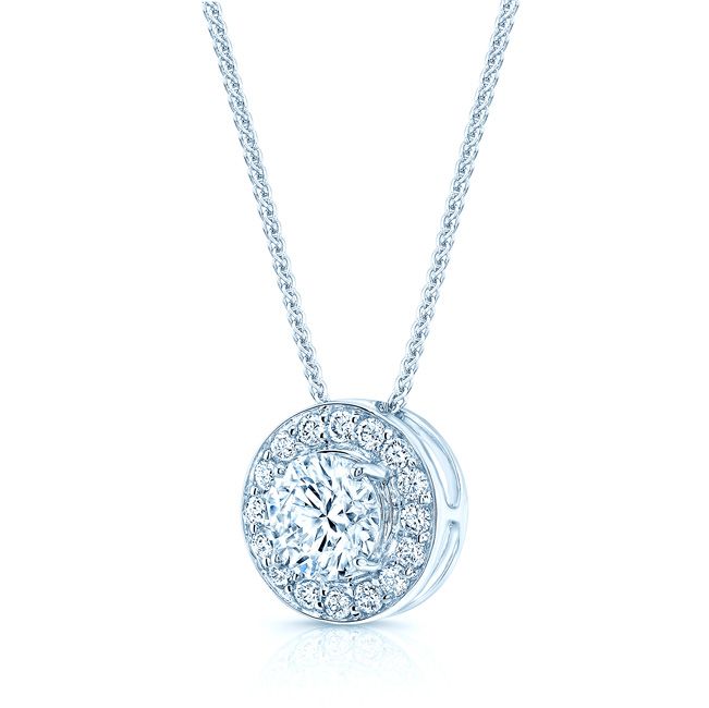 จี้เพชรรอบทรงกลมในทองคำขาว 18 กะรัต (เพชรกลาง 0.70 กะรัต)