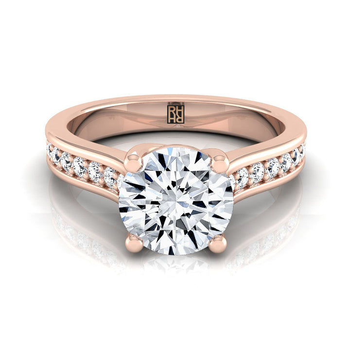 แหวนหมั้นเพชรทรงกลมเจียระไนแบบบริลเลียนต์ติดตั้งในร่องทองคำกุหลาบ 14K - 1/3 กะรัตรวม