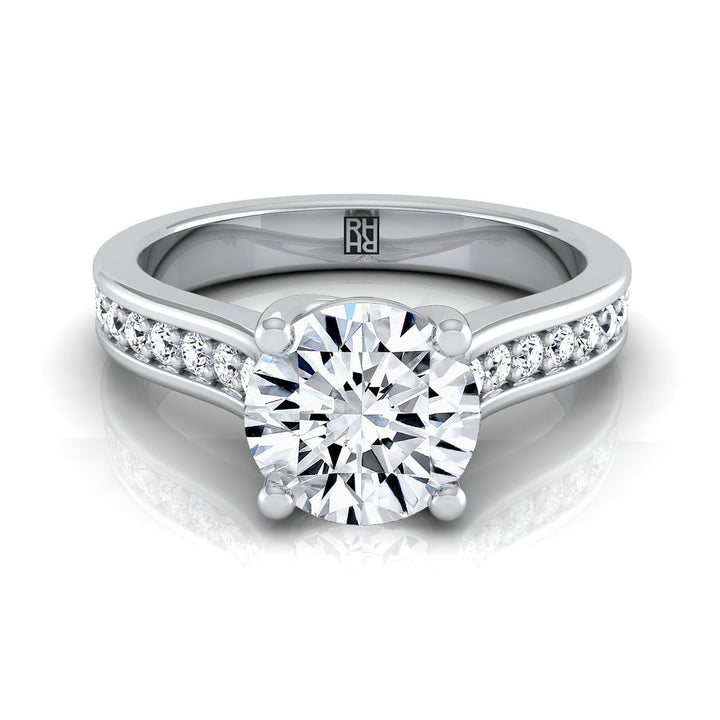 แหวนหมั้นเพชรทรงกลมเจียระไนแบบ Brilliant ประดับเพชรแบบแชนเนล 14K ทองคำขาว - 1/3 กะรัตรวม