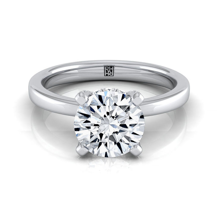 แหวนหมั้นเดี่ยวทองคำขาว 18K ประดับเพชรทรงกลมเจียระไนแบบ Brilliant ที่กรงเล็บและฮาโลลับ - 1/10 กะรัตรวม