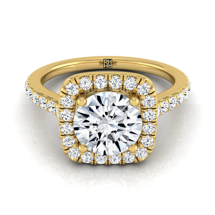 แหวนหมั้นสไตล์วิหารแบบคลาสสิก ประดับเพชรทรงกลมเจียระไนแบบบริลเลียนต์ 18K ทองเหลืองสีเหลือง พร้อมฮาโลว์แบบปาเว่ - 1/2ctw