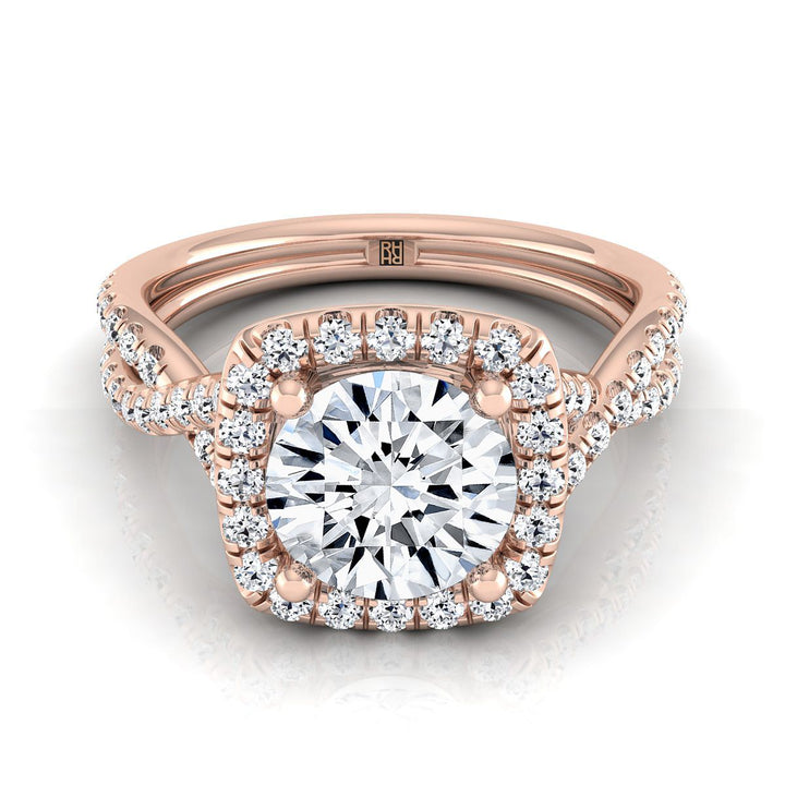 คลาสสิกพร้อมความโดดเด่น แหวนวงนี้มีดีไซน์เพชรสี่เหลี่ยมแบบฮาโลว์พร้อมแถบพันเกลียวที่ประดับด้วยเพชรเจียระไนแบบบริลเลียนต์ (h-i/vs 0.45ctw) ที่ตั้งอย่างสวยงามในตัวเรือนทองกุหลาบ 14k แบบคลาสสิก