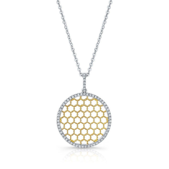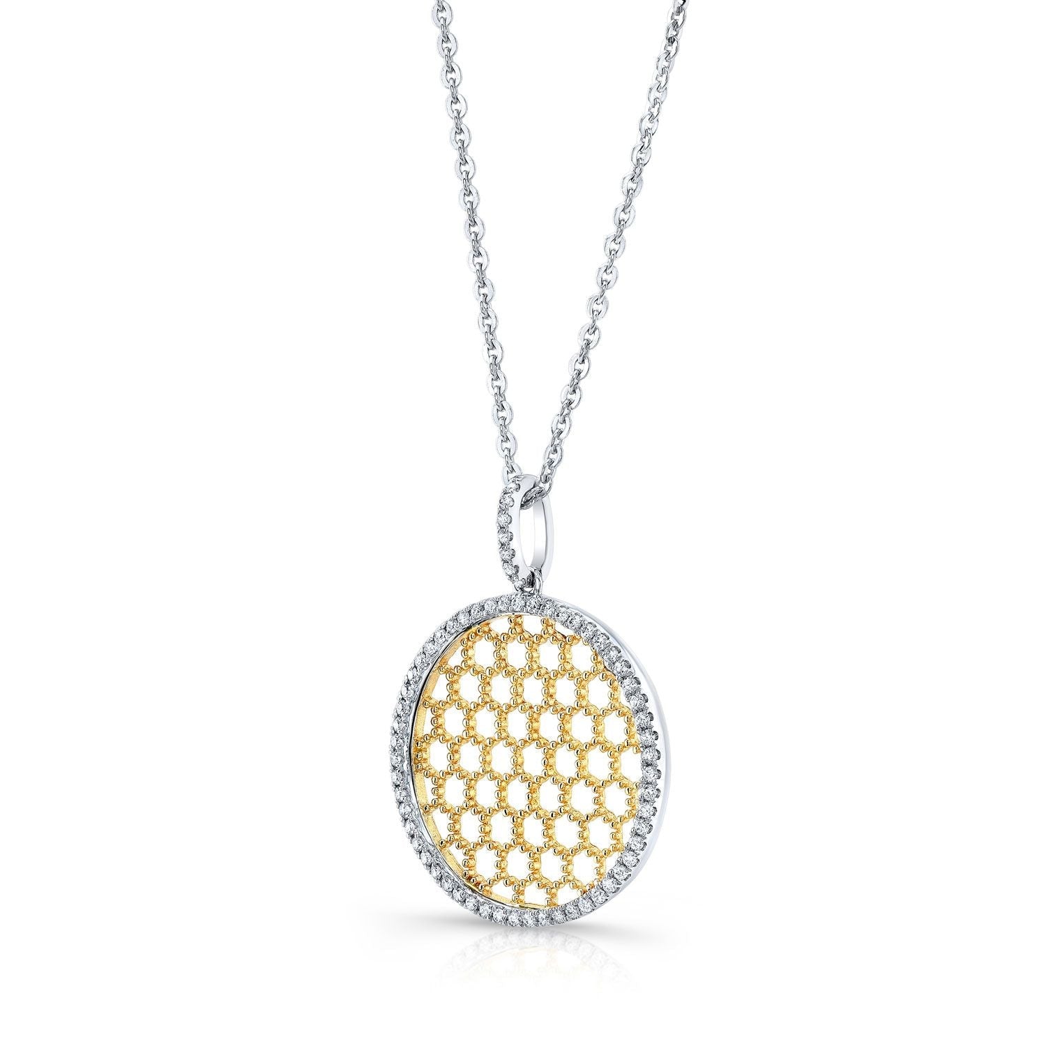 จี้ลายรังผึ้งลายเพชรในทองสองโทน 14k (1/6 Ct.tw.)