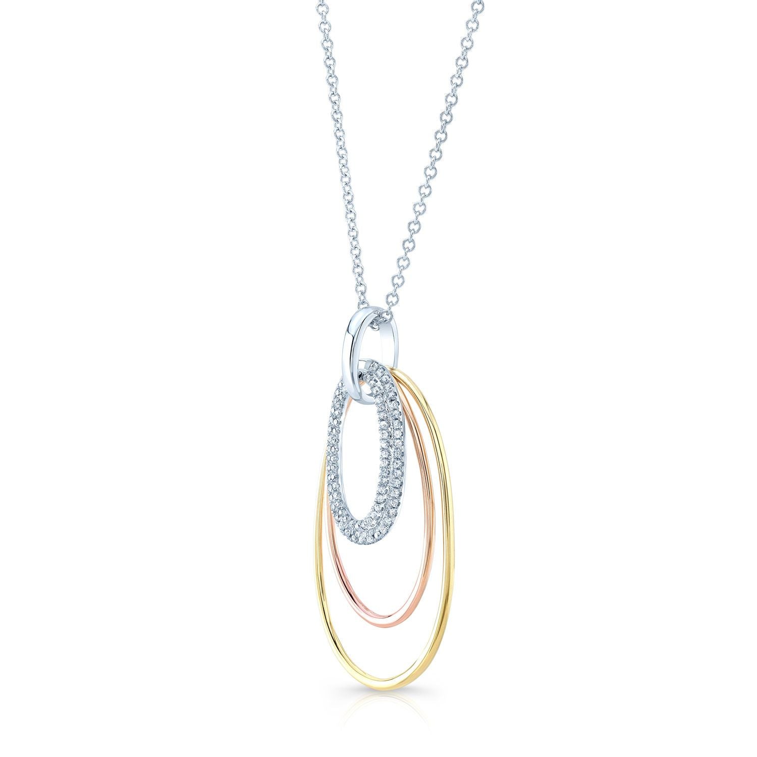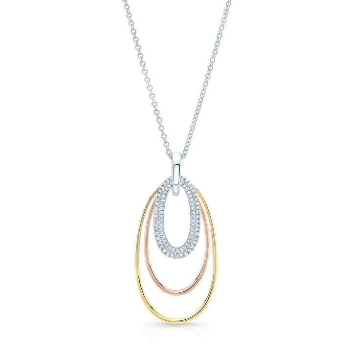 จี้เพชรรูปไข่สามชั้นในทองสองสี 14k