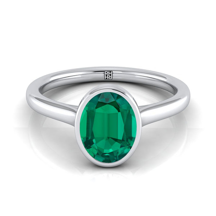 แหวนหมั้นแบบโซลิแทร์เม็ดเดียวขอบเรียบรูปไข่ประดับมรกตแพลทินัม