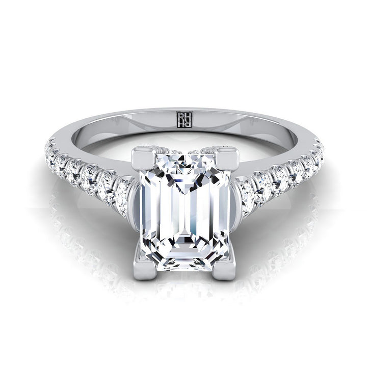 แหวนหมั้นเส้นตรงประดับเพชรแพฟแบบหนามเตยเจียระไนรูปสี่เหลี่ยมมรกตแพลทินัม - 1/2ctw