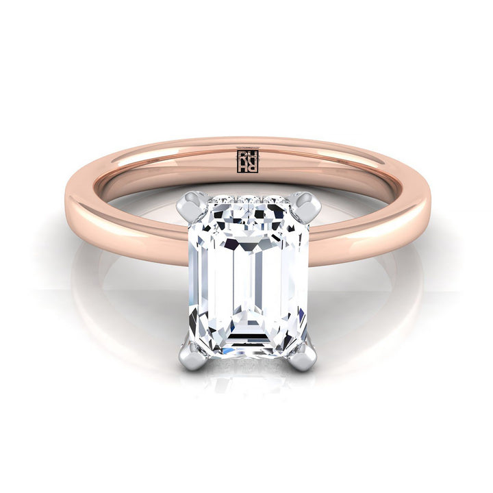แหวนหมั้นเพชรทรงมรกตแบบซ่อนเพชรฝังในตะกร้าทองคำชมพู 14K -1/10ctw