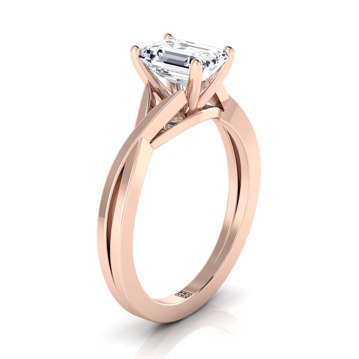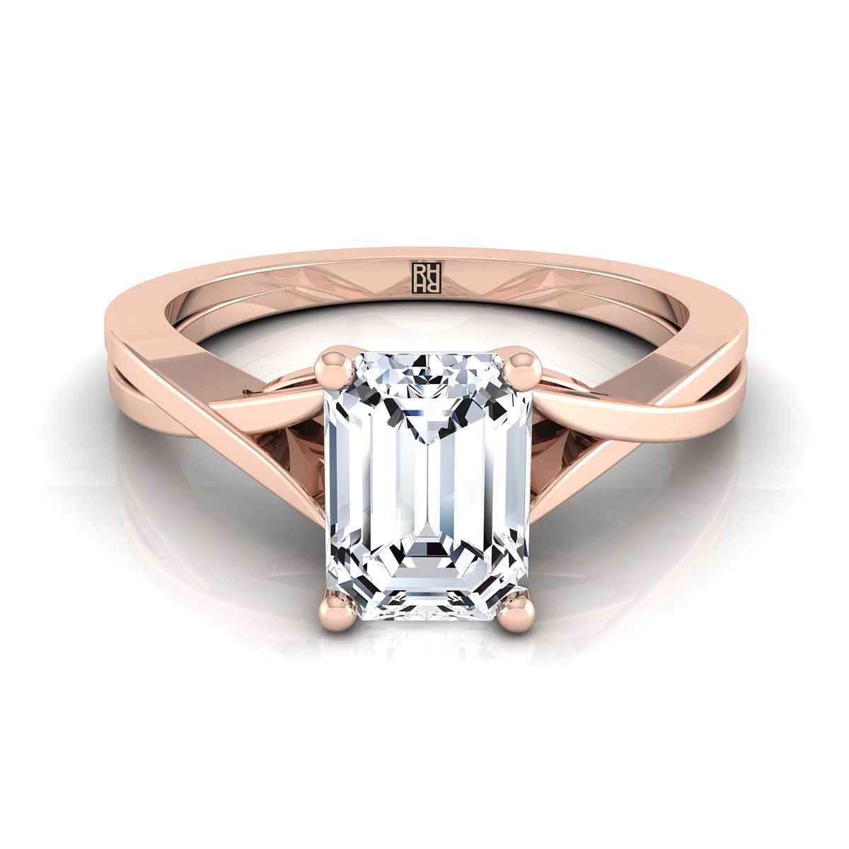 แหวนหมั้นเดลิเคตทวิสต์แบบโซลิแทร์ทองคำชมพู 14K ตัดอีเมอรัลด์