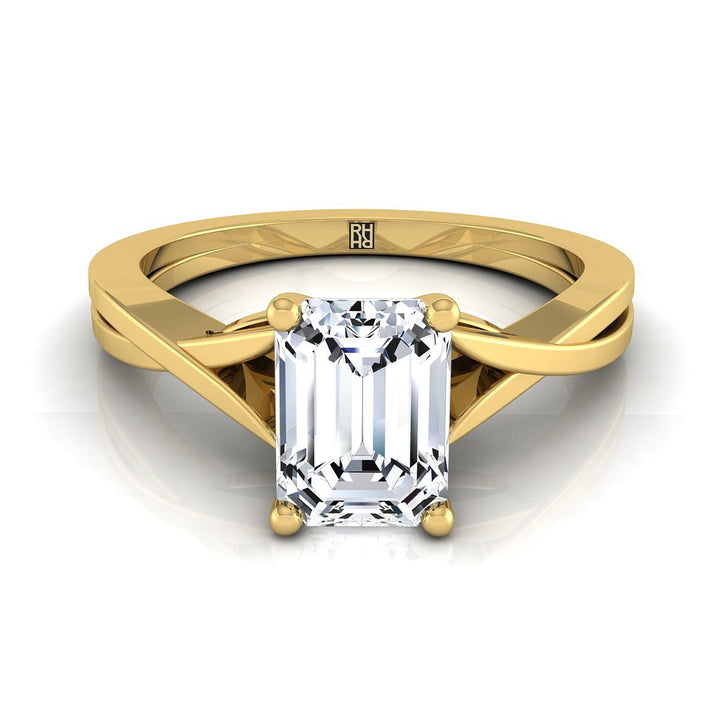 แหวนหมั้นเดี่ยวบิดละเอียดทรงสี่เหลี่ยมมรกตทองคำเหลือง 14K