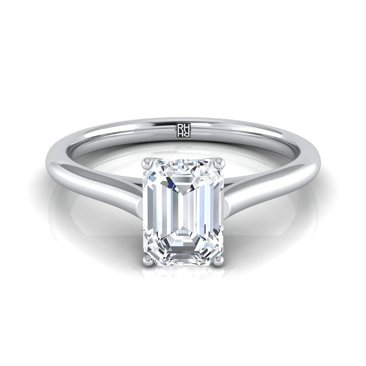 แหวนหมั้นเดี่ยวแบบสไตล์วิหาร ตัดทรงมรกต ทองคำขาว 18K แบบสวมใส่สบาย