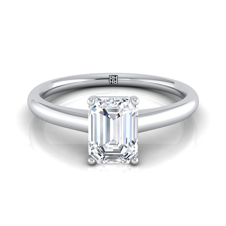 แหวนหมั้นเดี่ยวแบบสวมใส่สบายร่วมสมัย ตัดทรงมรกต ทองคำขาว 18K