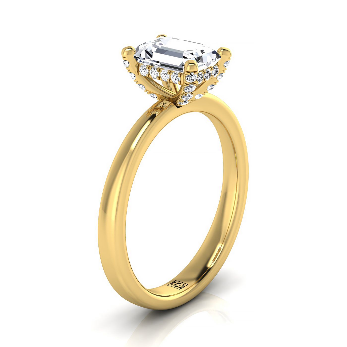 แหวนหมั้นเดี่ยวประดับเพชรทรงมรกต ตะขอประดับเพชรทองคำเหลือง 18K และฮาโลลับ - 1/10 กะรัตรวม