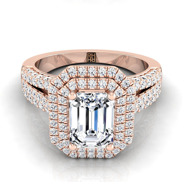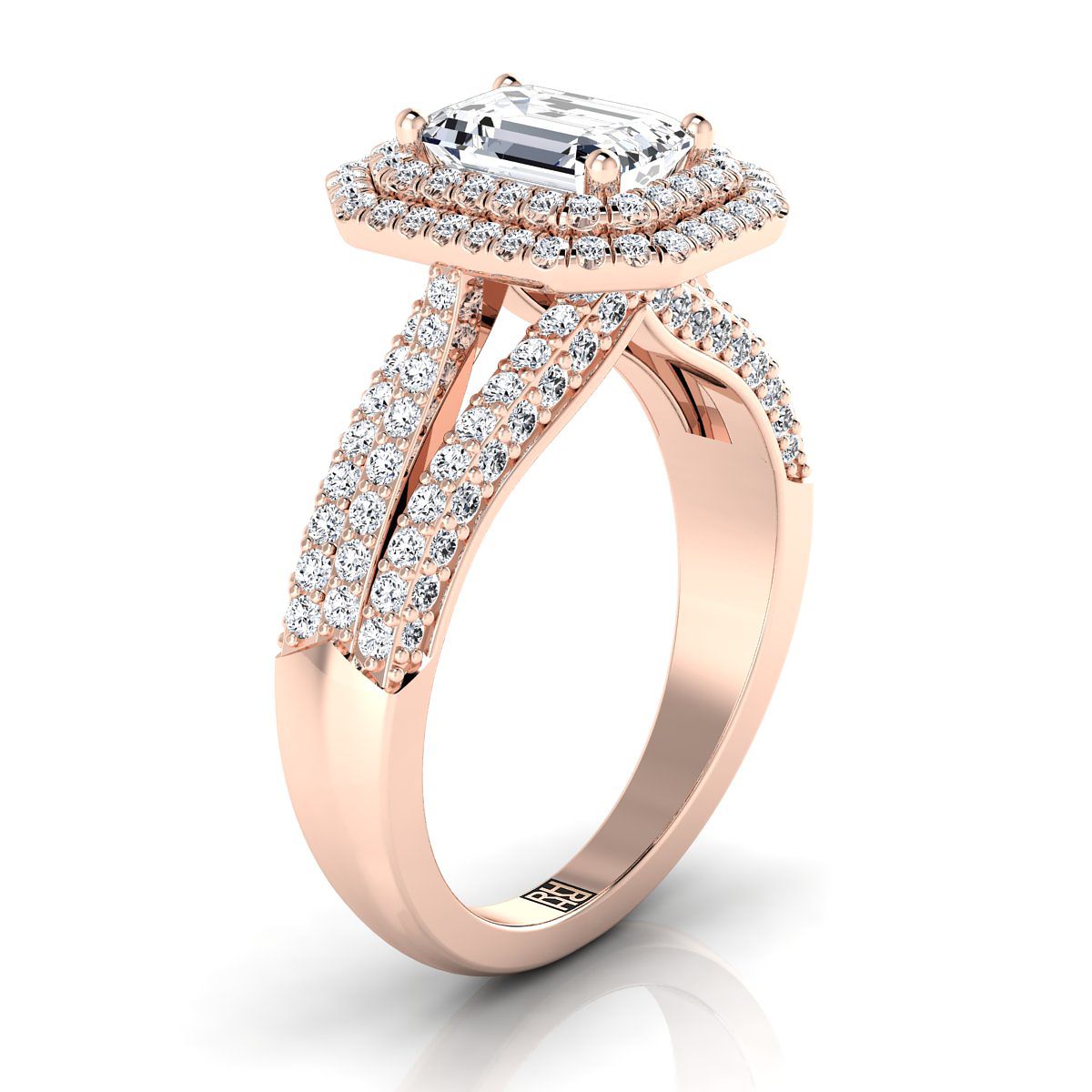 แหวนหมั้นทองคำชมพู 14K ประดับเพชรทรงเอมเมอรัลด์คัทแบบสามชั้น พร้อมวงแหวนเพชร -7/8ctw
