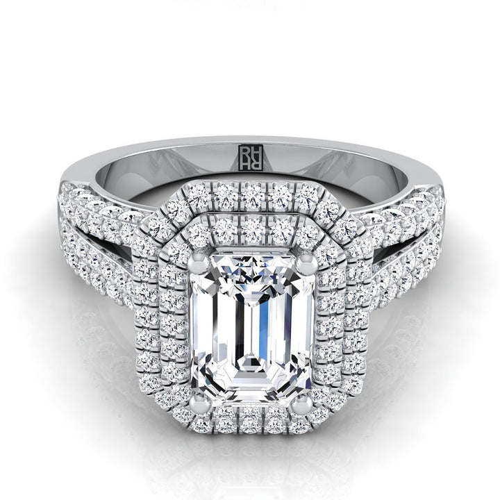 แหวนหมั้นมงกุฎเพชรสามชั้นสุดพิเศษแบบตัดมรกตทองคำขาว 18K - 7/8ctw