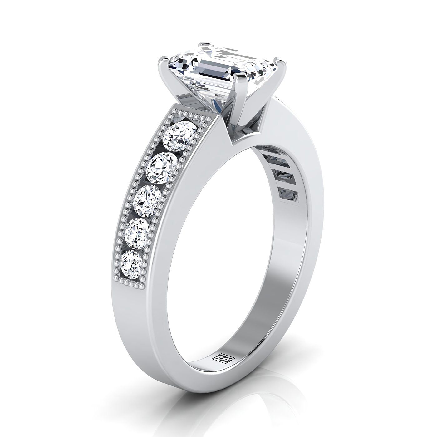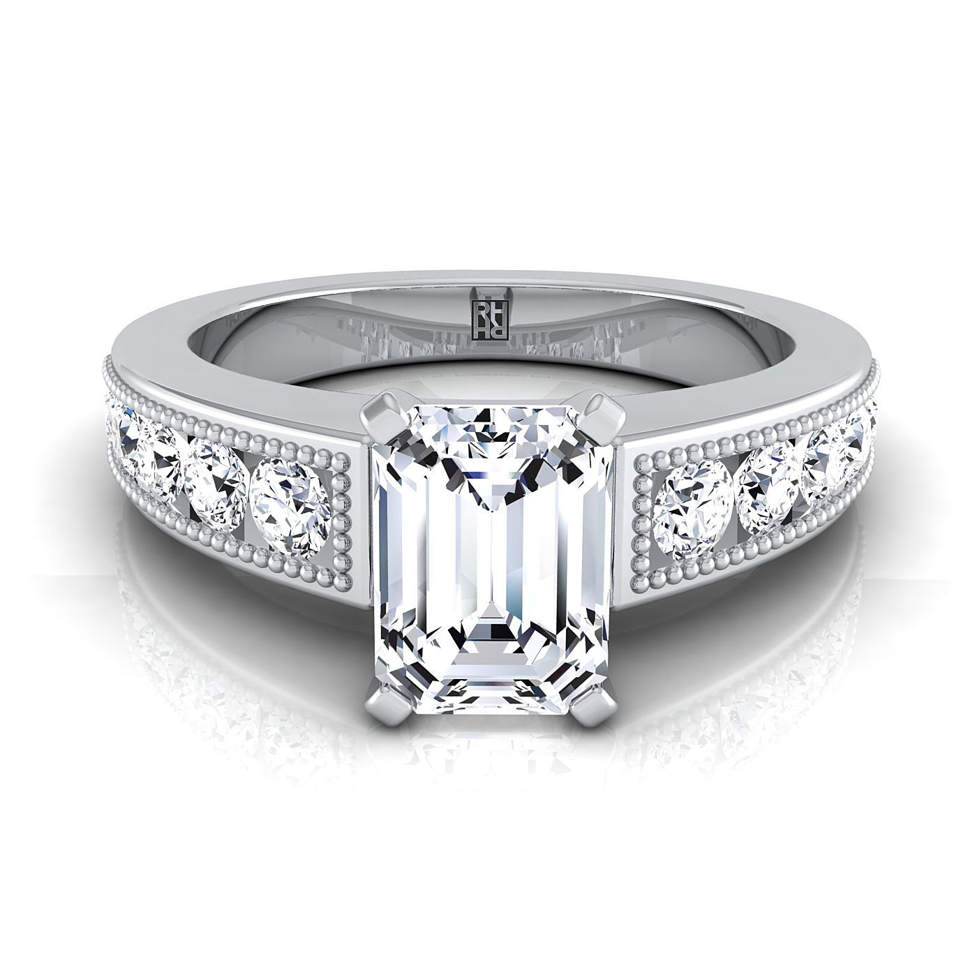 แหวนหมั้นทองคำขาว 14K ประดับเพชรทรงสี่เหลี่ยมมรกตแบบโบราณ พร้อมเม็ดมิลเกรนและการฝังแบบช่อง - 1/2ctw