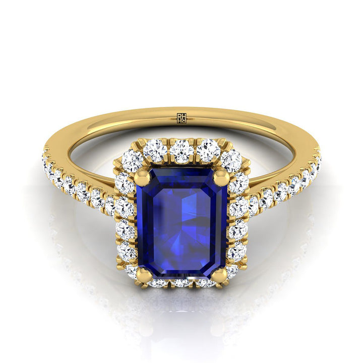 แหวนหมั้นทองคำเหลือง 14K ประดับแซฟไฟร์แบบวงแหวนเล็กพร้อมเพชรฝรั่งเศสแบบปาเว่ - 3/8 กะรัตรวม