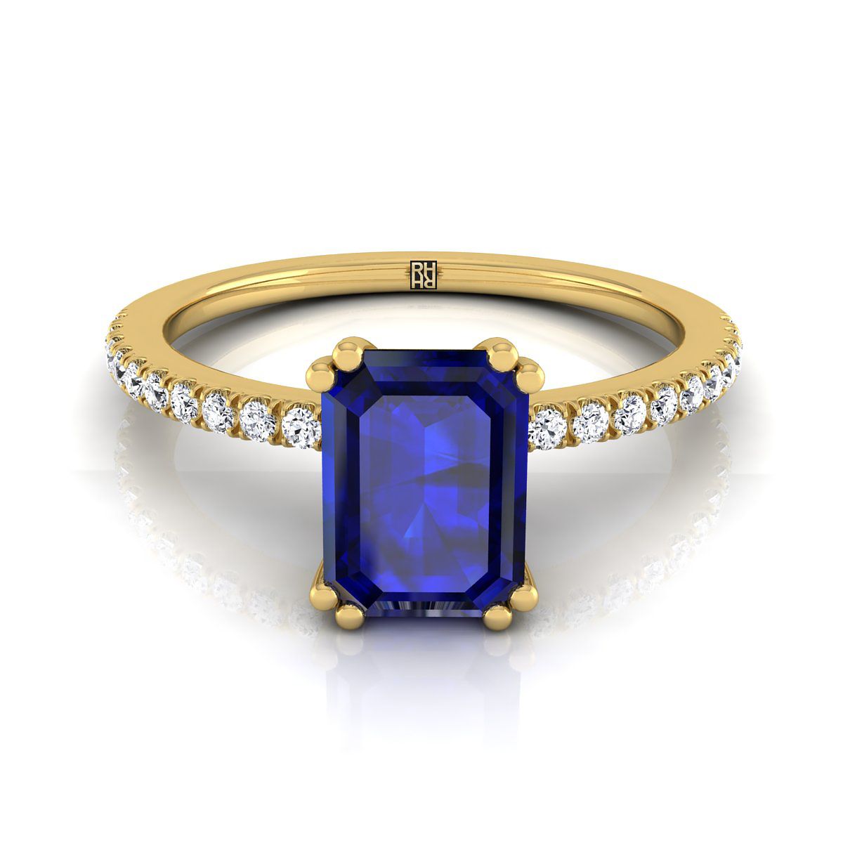แหวนหมั้นเพชรแบบหนีบคู่ฝรั่งเศสเรียบง่ายประดับไพลินทรงสี่เหลี่ยมผืนผ้าสีเขียวมรกตทองคำเหลือง 18K - 1/6ctw