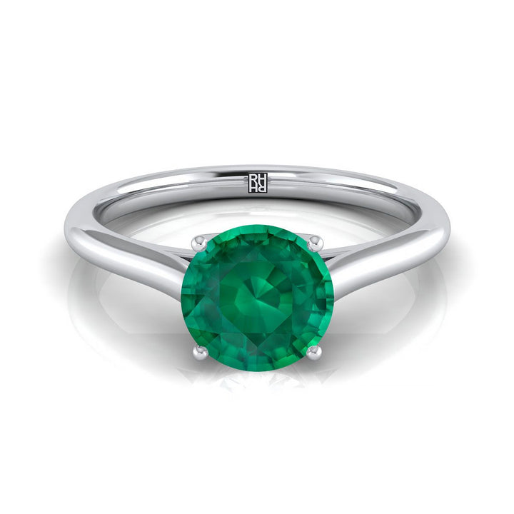 แหวนหมั้นเดี่ยวแบบสไตล์วิหารมรกตทรงกลมเจียระไนแบบบริลเลียนท์ทองคำขาว 18K แบบสวมใส่สบาย