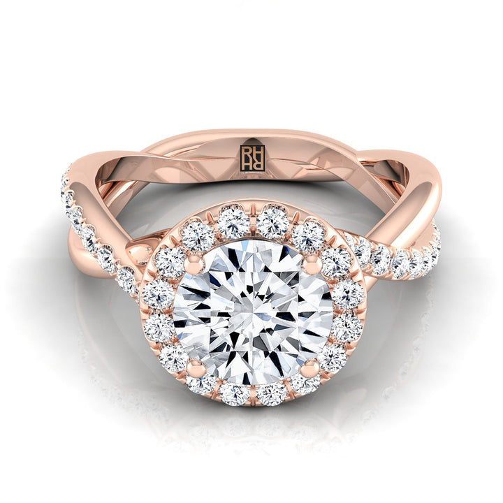 แหวนหมั้นเพชรทรงกลมเจียระไนแบบ Brilliant สีโรสโกลด์ 14K ดีไซน์เถาวัลย์บิดเป็นวงแหวนประดับเพชรรอบเม็ดกลาง - 1/2 กะรัตรวม