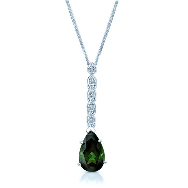จี้ทัวร์มาลีนสีเขียวและเพชรในทองคำขาว 14k