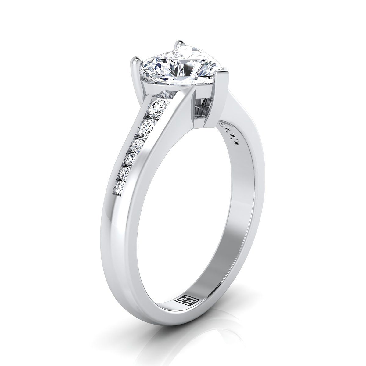 ผลิตด้วยมืออย่างประณีตในทองคำขาวแท้ 18 กะรัต แหวนหมั้นรูปหัวใจประดับเพชรแบบช่อง (h-i/vs 0.17 กะรัตรวม) นี้สร้างการตั้งค่าที่สมบูรณ์แบบสำหรับเพชรโซลิแทร์คลาสสิกที่จะคงอยู่ตลอดชีวิต