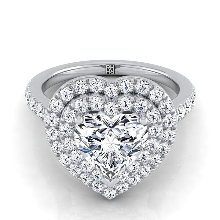 แหวนหมั้นรูปหัวใจแบบดับเบิลเพฟที่ทำด้วยมืออย่างประณีตนี้ โชว์เพชรเจียระไนแบบบริลเลียนท์คัท (h-i/vs 0.80 Ctw) ที่ประดับอย่างสวยงามในตัวเรือนแพลตตินัมคลาสสิก