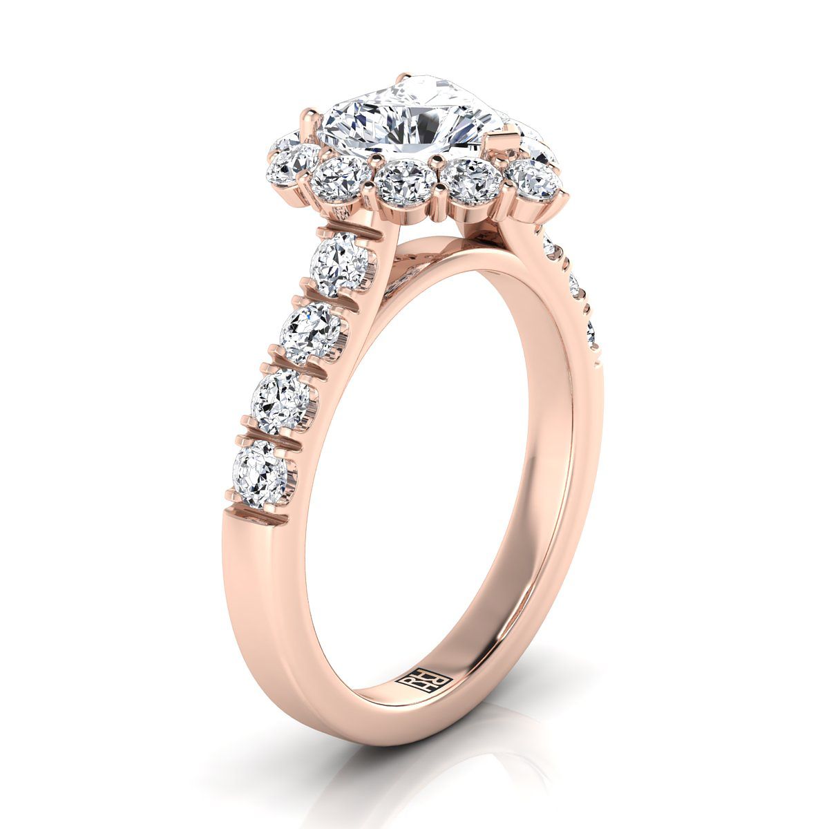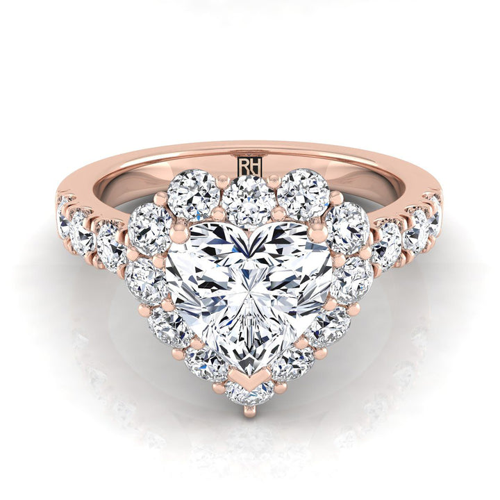 แถลงการณ์ที่สง่างามของสไตล์ แหวนหมั้นรูปหัวใจแบบฮาโล่ปูเว่ที่มีเพชรเจียระไนแบบสวยงาม (h-i/vs 1.00ctw) ถูกตั้งอย่างสวยงามในทองคำกุหลาบ 14k แบบคลาสสิก