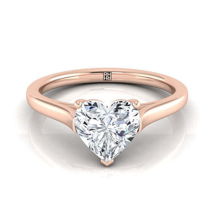 แถลงการณ์คลาสสิกของสไตล์ แหวนหมั้นรูปหัวใจแบบโซลิแทร์นี้มีการแสดงออกของชั้นขอบสี่เหลี่ยมและการตั้งโบสถ์ในทองคำกุหลาบ 14k