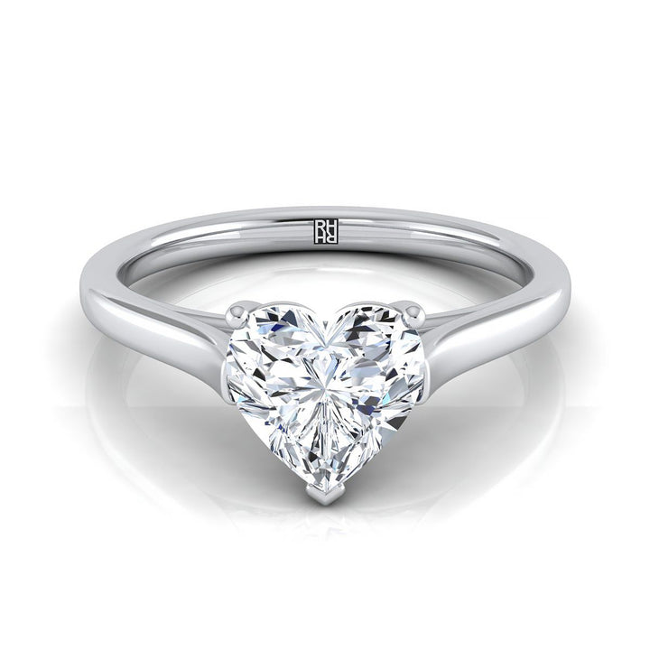 แหวนหมั้นรูปหัวใจแพลทินัมแบบโซลิแทร์สไตล์วิหารที่สง่างาม