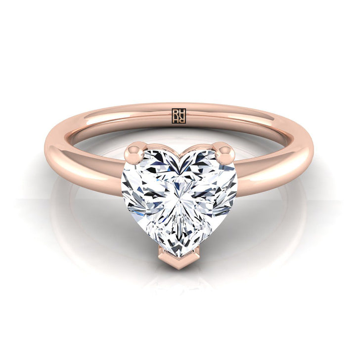 คลาสสิกและสง่างาม แหวนหมั้นเพชรเดี่ยวรูปหัวใจนี้มีการออกแบบโค้งมนในทองคำกุหลาบ 14k