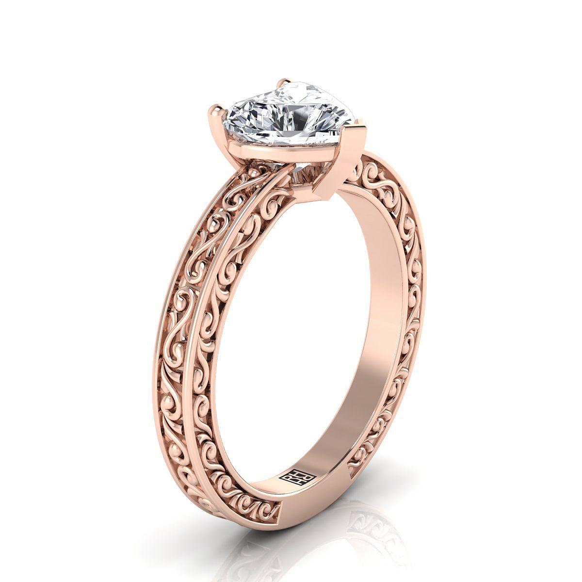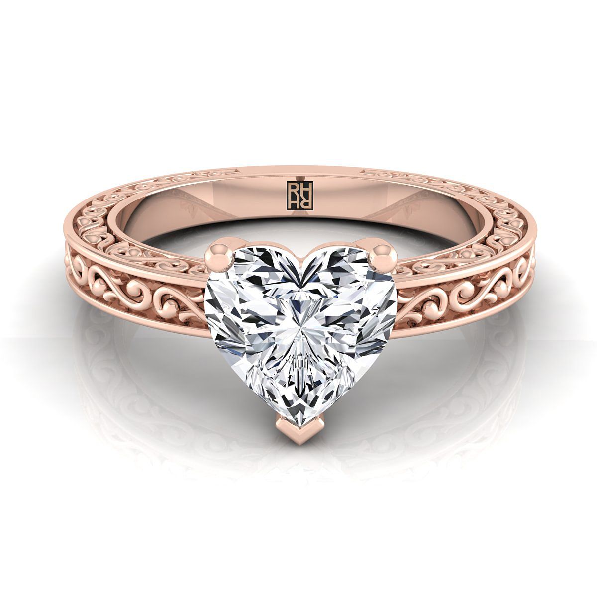 แหวนหมั้นแบบโบราณทองคำชมพู 14K รูปหัวใจ มีการแกะสลักด้วยมือ