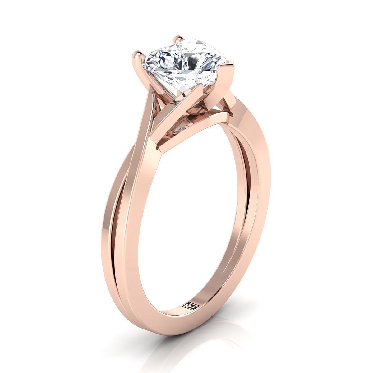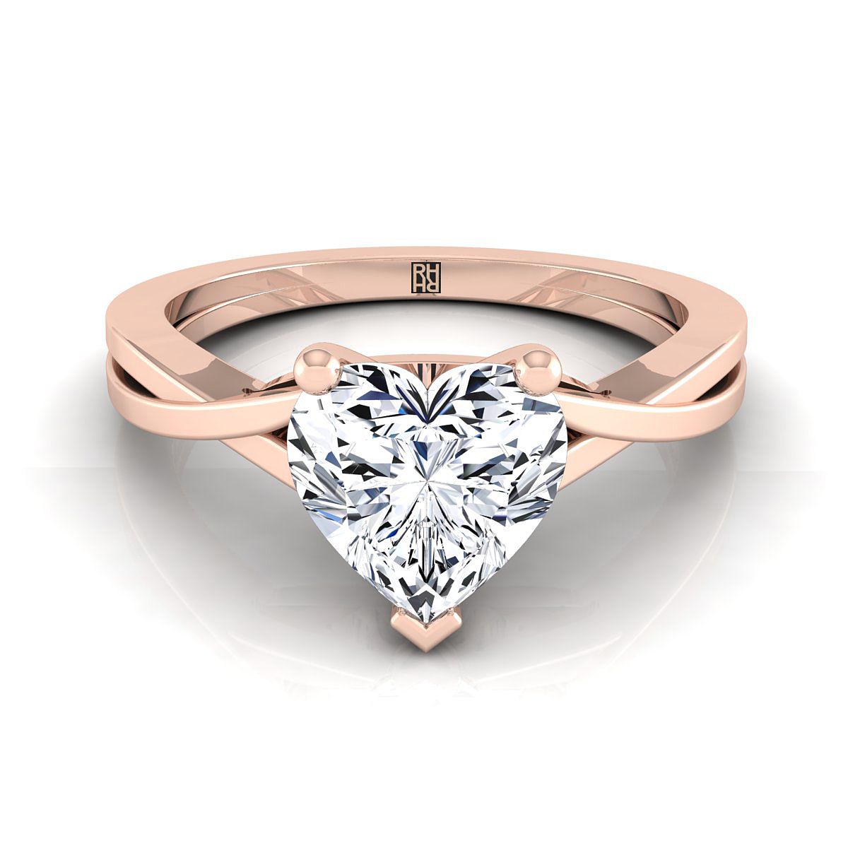แหวนหมั้นเดี่ยวรูปหัวใจแบบบิดอ่อนนุ่มทองคำชมพู 14K