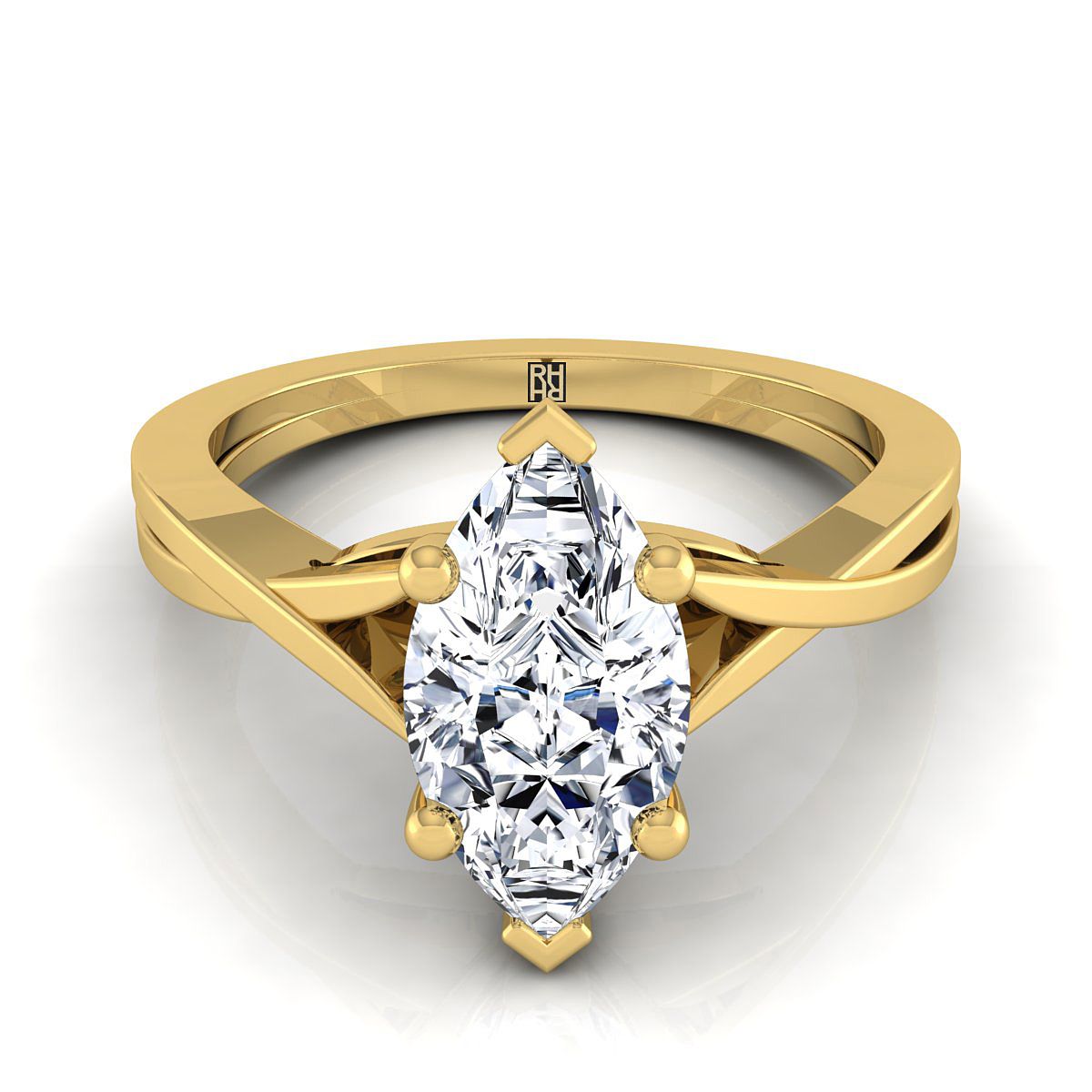 แหวนหมั้นเดี่ยวบิดละเอียดรูปมาร์คีส์ทองคำเหลือง 18K