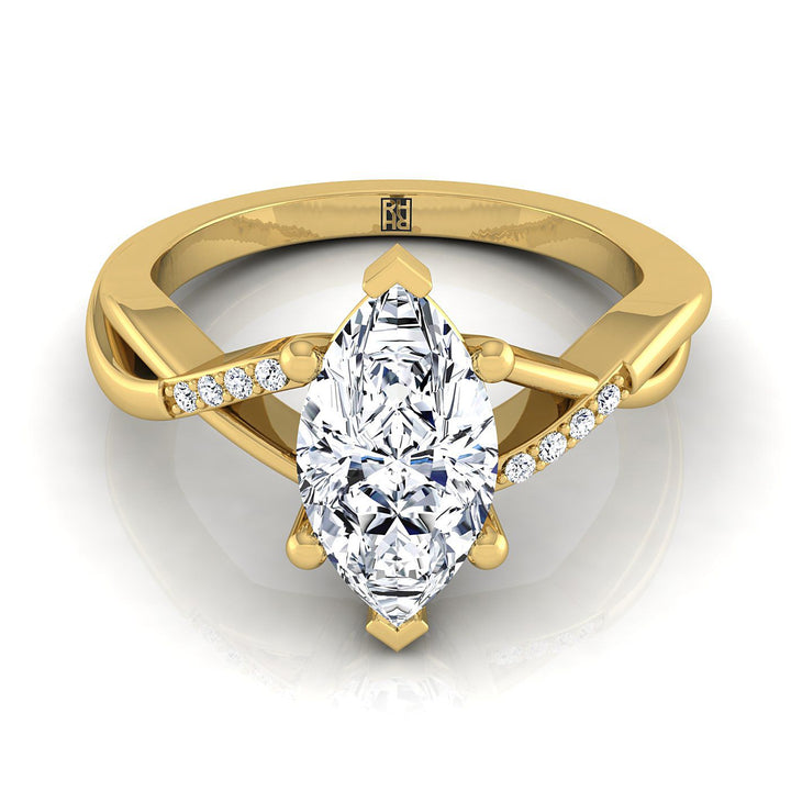 แหวนหมั้นบิดไขว้เพชรทรงมาร์คีส์ทองคำเหลือง 18K