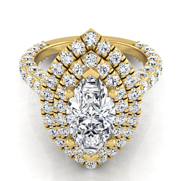 แหวนหมั้นทองคำเหลือง 14K ทรงมาร์คีส์ เพชรหนาและหรูหราพร้อมฮาโลคู่แบบฝรั่งเศสปาเว่ - 2ctw