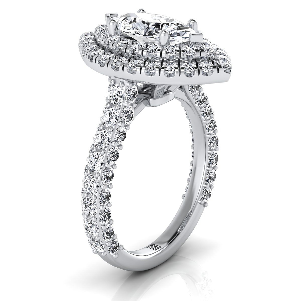 แหวนหมั้นเพชรแพลทินัมมาร์คีสแบบหนาและหรูหราพร้อมฮาโลคู่สไตล์ฝรั่งเศสปาเว - 2ctw