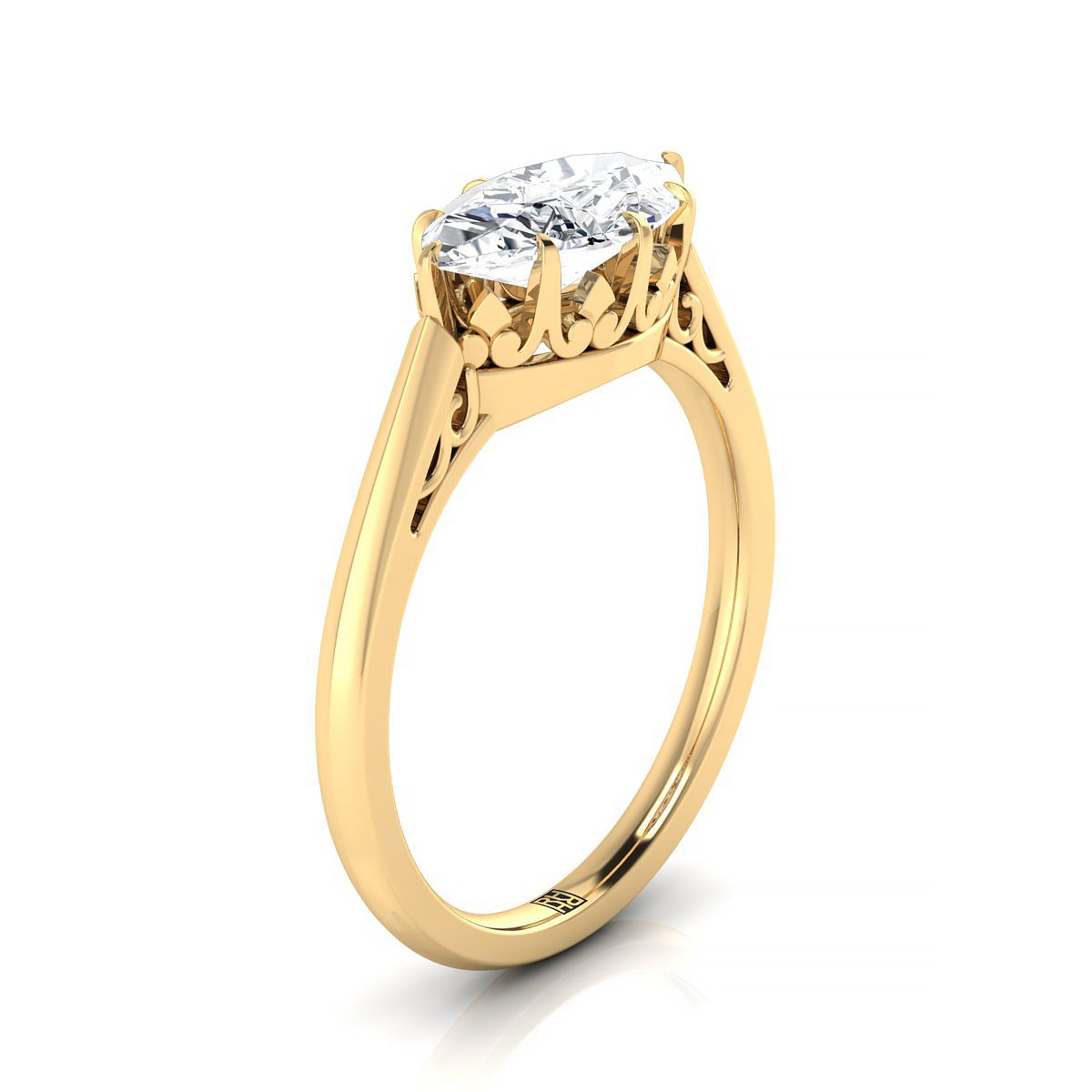 แหวนหมั้นเดี่ยวทองคำเหลือง 18K รูปมาร์คีส พร้อมลวดลายม้วนโบราณ