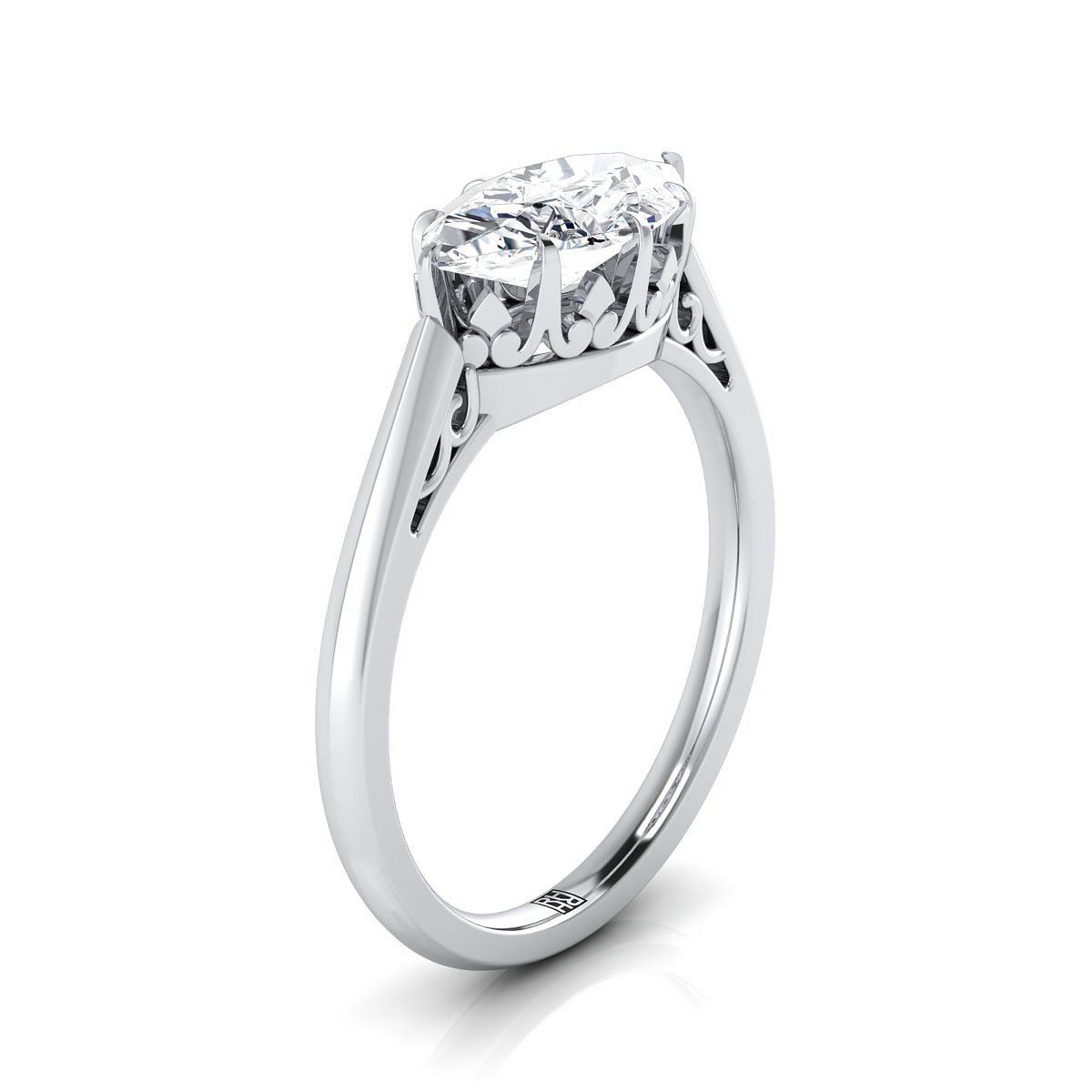 คลาสสิกและสง่างาม แหวนหมั้นเพชรมาร์คีส (ทิศตะวันออก-ตะวันตก) พร้อมชานแกลเลอรีแบบม้วนในแพลทินัม