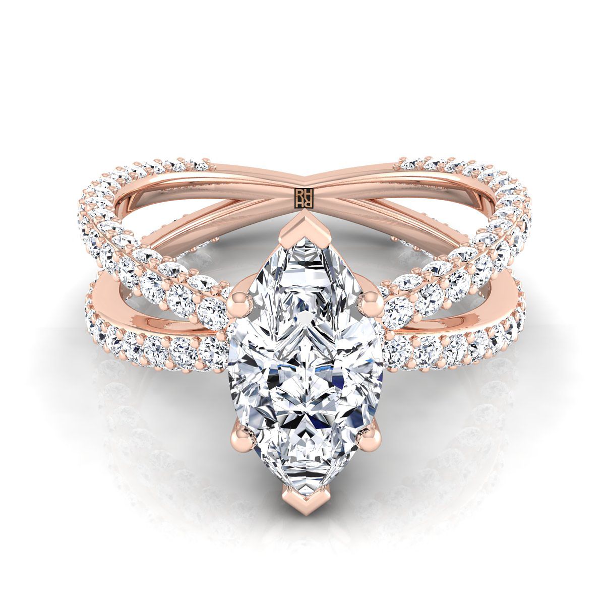 แหวนหมั้นเพชรแบบเปิดรูปมาร์คีส 14K สีทองกุหลาบ ประดับเพชรแบบพาเว่ ขัดไขว้ -1-1/3ctw