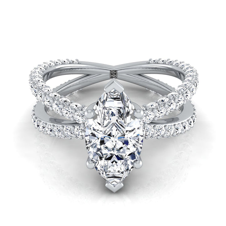 แหวนหมั้นเพชรแบบไข่ขาวทองขาว 18K ประดับเพชรแบบปาเว่ไขว้เปิด -1-1/3ctw