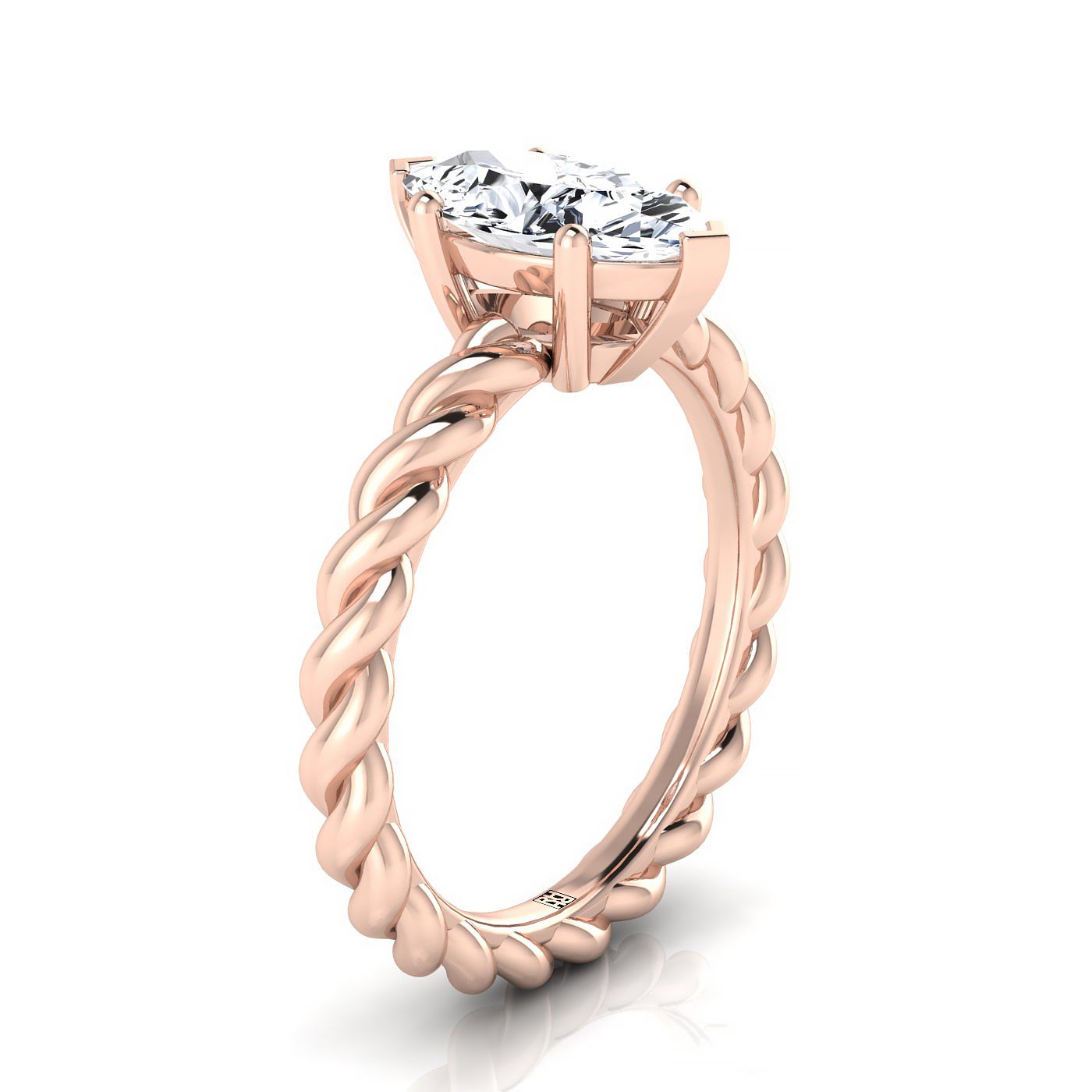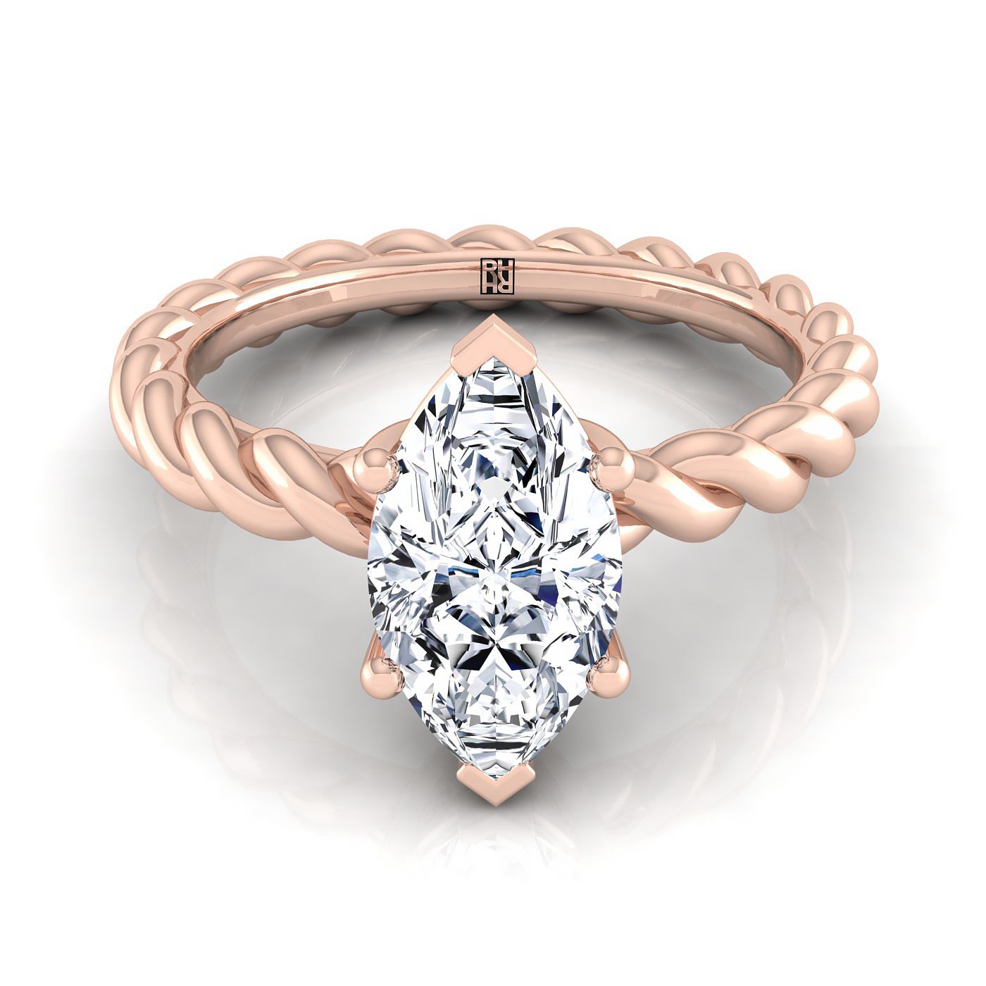 แหวนเดี่ยวแบบเกลียวเชือกบิด 14K สีทองกุหลาบรูปมาร์คีส