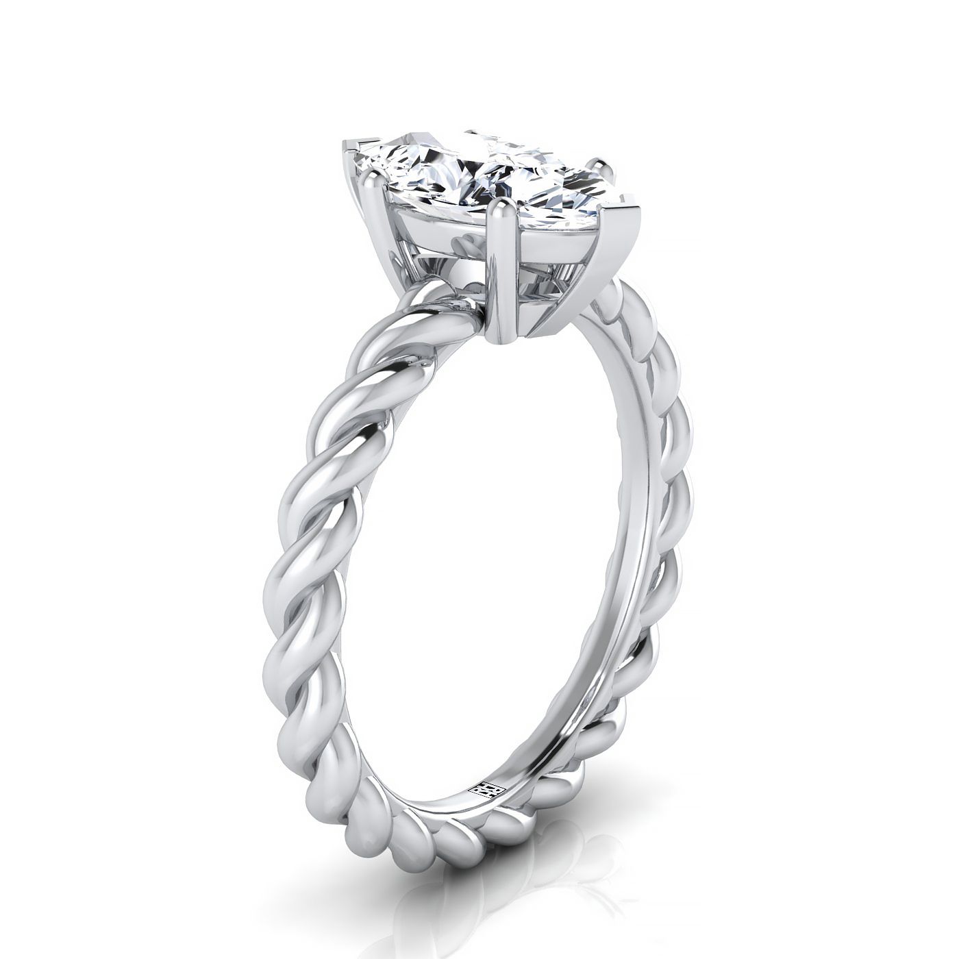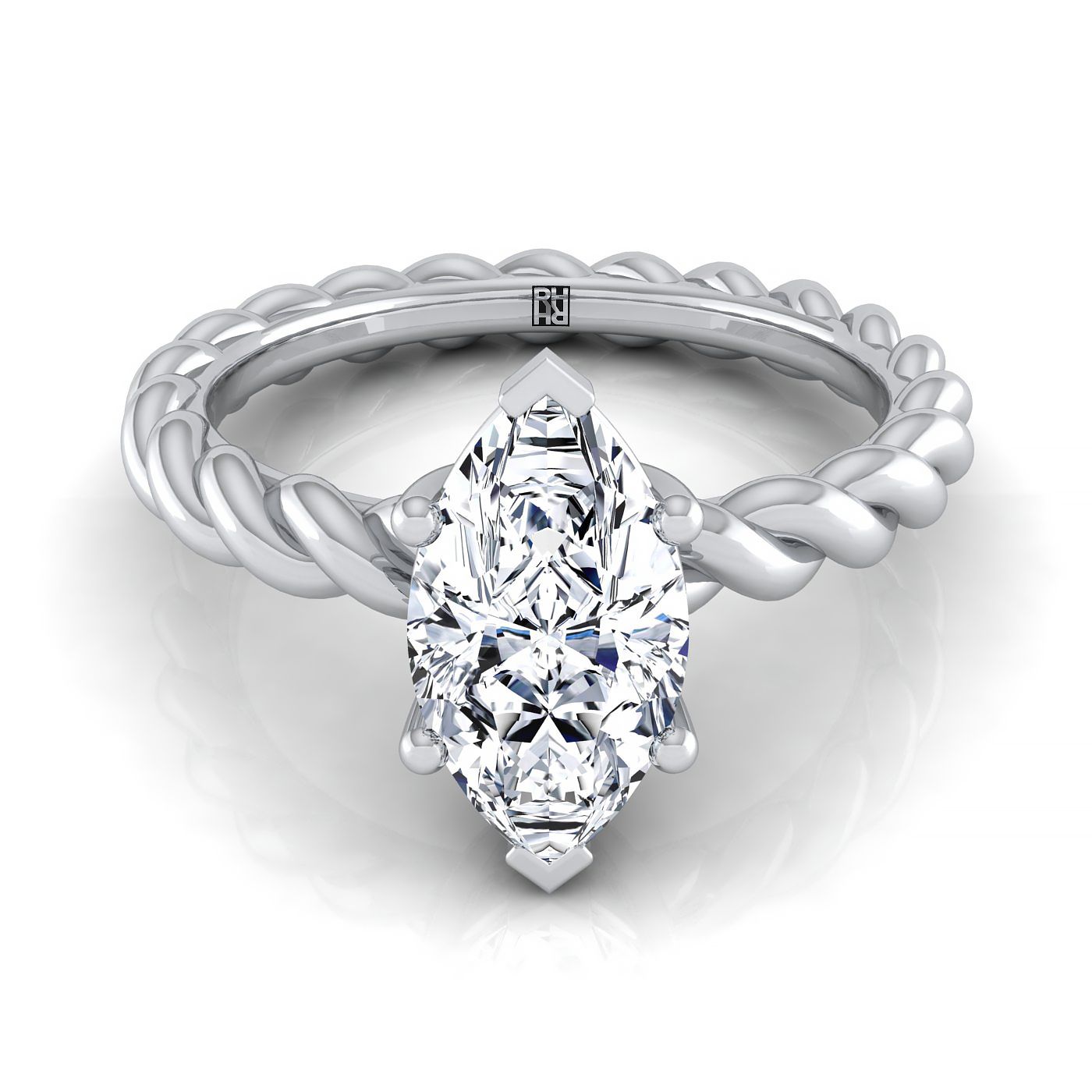 แหวนเดี่ยวทองคำขาว 14K รูปมาร์คีส์ ลายเกลียวเชือกบิด