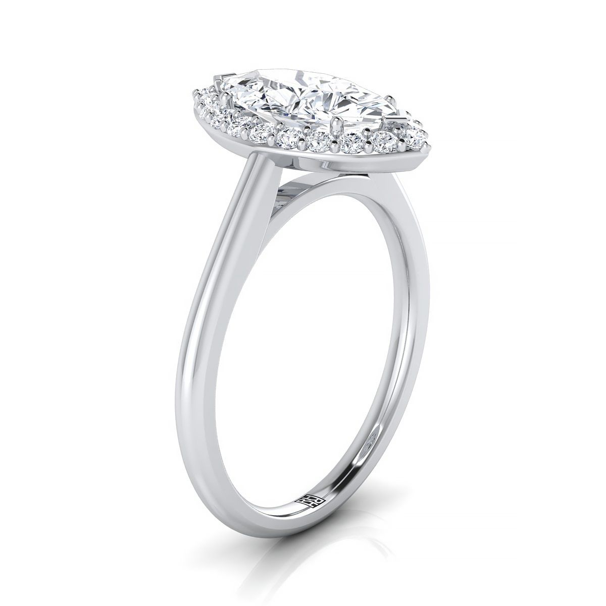 แถลงการณ์สไตล์คลาสสิก แหวนหมั้นมาควิสฮาโลว์พาเว่ชิ้นนี้นำเสนอเพชรเจียระไนแบบบริลเลียนต์ (h-i/vs 0.25 Ctw) ที่ตั้งไว้อย่างสวยงามในตัวเรือนทองคำขาว 14 กะรัตแบบคลาสสิก