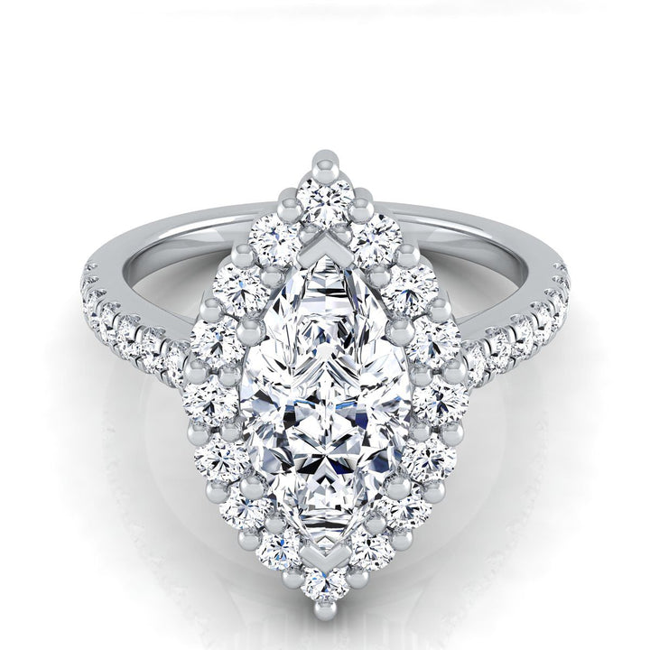 แหวนหมั้นทองคำขาว 14K ทรงมาร์คีส์ ประดับเพชรแบบหนีบร่วม ฮาโลว์ - 5/8 กะรัตรวม