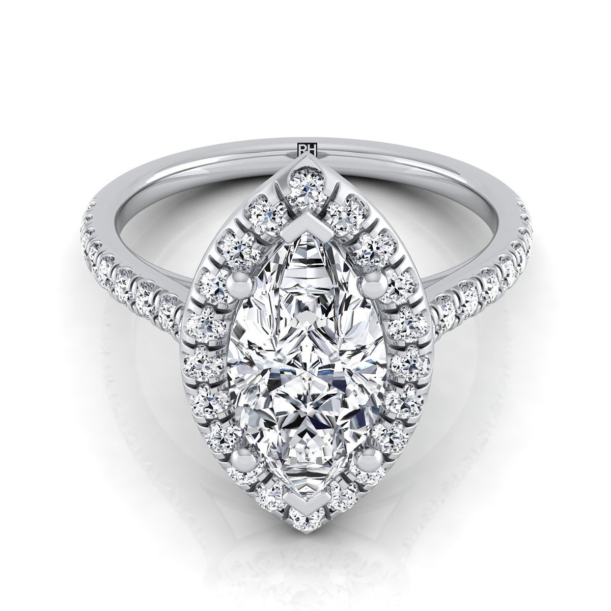 แหวนหมั้นทองคำขาว 14K ทรงมาร์คีส์ คลาสสิก ฝรั่งเศสแบบปาเว่ ฮาโลและเส้นตรง - 1/2ctw